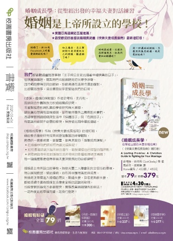 也能學習到避免不必要衝突、實際改善婚姻關係的辦法! 全台基督教書房同步優惠中(本優惠僅限台灣地區)